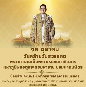 ๑๓ ตุลาคม วันคล้ายวันสวรรคต พระบาทสมเด็จพระบรมชนกาธิเบศร มหาภูมิพลอดุลยเดชมหาราช บรมนาถบพิตร