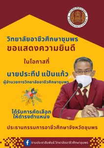 ผู้อำนวยการวิทยาลัยอาชีวศึกษาชุมพร ได้รับการคัดเลือกจากมติที่ประชุมคณะกรรมการอาชีวศึกษาจังหวัดชุมพร