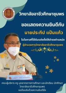 วิทยาลัยอาชีวศึกษาชุมพร ขอแสดงความยินดีกับ นายประทีป แป้นแก้ว