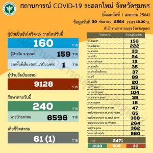 ยอดรวมผู้ติดโควิด 194คน วันอังคารที่ 28 กันยายน 2564