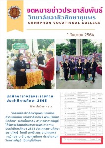 จดหมายข่าวประชาสัมพันธ์ วิทยาลัยอาชีวศึกษาชุมพร ฉบับวันที่ 1 กันยายน 2564
