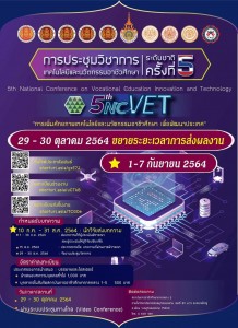ขอเชิญเข้าร่วมประชุมวิชาการเทคโนโลยีและนวัตกรรมอาชีวศึกษา ระดับชาติ ครั้งที่ 5 📌วันที่ 29 - 30 ตุลาคม 2564 📌ขยายเ