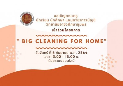 ขอเชิญคณะครู นักเรียน นักศึกษา แผนกวิชาการบัญชี วิทยาลัยอาชีวศึกษาชุมพร เข้าร่วมโครงการ Big Cleaning For Home ปีการศึกษา 2564