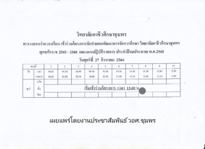 จดหมายข่าวประชาสัมพันธ์ วิทยาลัยอาชีวศึกษาชุมพร ประจำวันที่ 25 สิงหาคม 2564