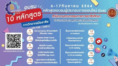 กระทรวงศึกษาธิการโดย สำนักงานคณะกรรมการการอาชีวศึกษา เปิดหลักสูตรอบรมผู้ประกอบการออนไลน์ (Live) ระหว่างวันที่ 6 - 17 กันยายน 2564