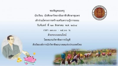 บัญชีเดินหน้าสร้างเสริมความรู้การออมรูปแบบออนไลน์ ขอเชิญนักเรียน นักศึกษา แผนกวิชาการบัญชีเข้าร่วมโครงการ สร้างเสริมความรู้การออม ปีการศึกษา 2564 ในวันจันทร์ที่ 23 สิงหาคม พ.ศ. 2564 เวลา 13.00-15.00 น. ในรูปแบบออนไลน์