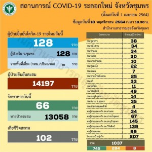 ยอดรายใหม่ 128 คน วันพฤหัสบดีที่ 18 พฤศจิกายน 2564