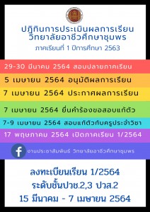 ปฏิทินการประเมินผลการเรียนภาคเรียนที่ 2 ปีการศึกษา 2563