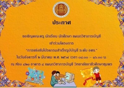 โครงการการเเข่งขันโปรเเกรมสำเร็จรูปบัญชี ระดับ อศจ.