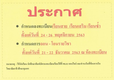 กำหนดลงทะเบียนเรียนสาย เรียนเสริม เรียนซ้ำ