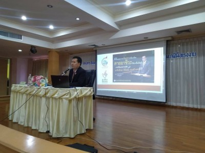 วิทยากรบรรยายเรื่อง การรับนักศึกษาฝึกงานเพื่อขอรับสิทธิประโยชน์จากกองทุนพัฒนาฝีมือแรงงาน