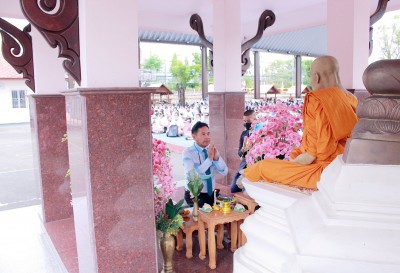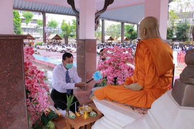 นายอำนวย นวลจันทร์ ผู้อำนวยการวิทยาลัยอาชีวศึกษาชุมพร เป็นประธานจุดธูปเทียนบูชาหลวงปู่สงฆ์