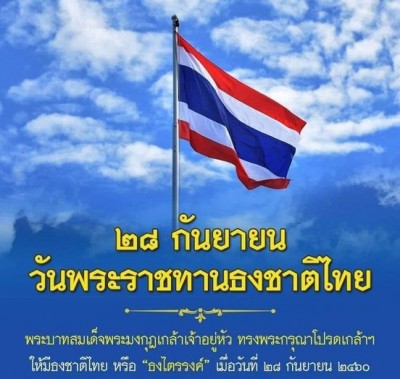 ๒๘ กันยายน วันพระราชทานธงชาติไทย