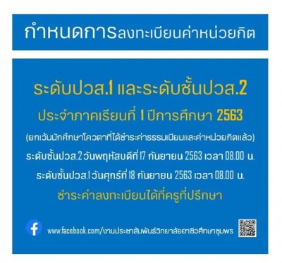 กำหนดการลงทะเบียนค่าหน่วยกิต