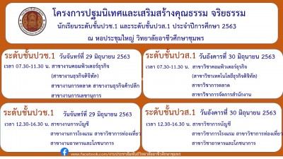 กำหนดการปฐมนิเทศและเสริมสร้างคุณธรรมจริยธรรม นศ.ปวช.1และปวส.1 ประจำปีการศึกษา 2563