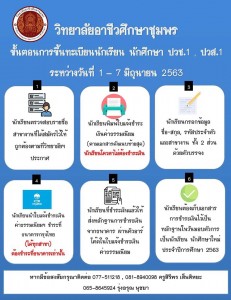 นักเรียน นักศึกษา ระดับชั้นปวช.1 และระดับชั้นปวส.1 วิทยาลัยอาชีวศึกษาชุมพร ที่ยังไม่ได้ชำระเงินค่าขึ้นทะเบียนเป็นนักเรียน นักศึกษา ประจำภาคเรียนที่ 1 ปีการศึกษา 2563