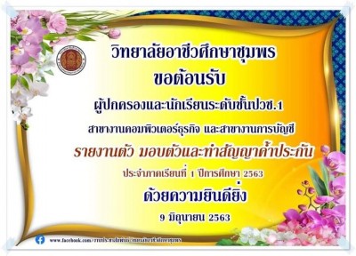 วิทยาลัยอาชีวศึกษาชุมพร ขอต้อนรับ ผู้ปกครองและนักเรียน ระดับชั้นปวช.1