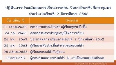 ปฏิทินการประเมินผลการเรียนการสอน วิทยาลัยอาชีวศึกษาชุมพร ประจำภาคเรียนที่ 2 ปีการศึกษา 2562