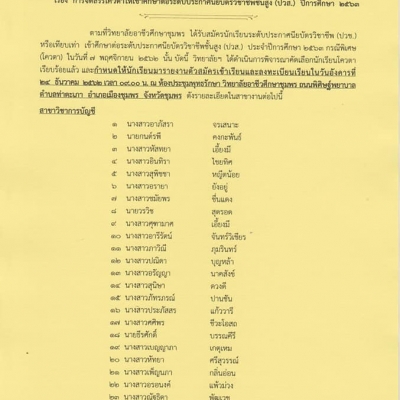 การจัดสรรโควตาให้เข้าศึกษาต่อระดับประกาศนียบัตรวิชาชีพชั้นสูง ประจำปีการศึกษา 2563