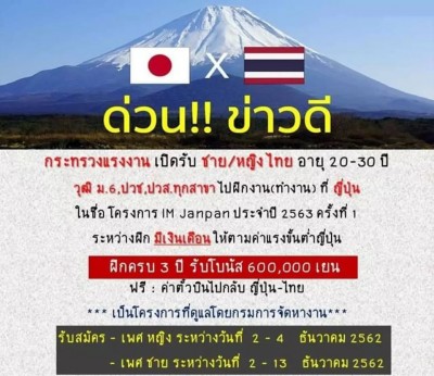 รับสมัครคัดเลือกผู้ฝึกงานเทคนิคคนไทยไปฝึกงานในประเทศญี่ปุ่น