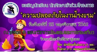 ขอเชิญนักเรียน นักศึกษาแผนกวิชาการโรงแรม เข้าร่วมโครงการ ความปลอดภัยในงานโรงแรม