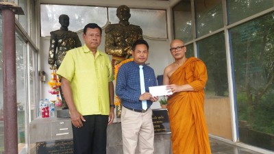 คณะผู้บริหารวิทยาลัยอาชีวศึกษาชุมพร ถวายเงินบริจาคแก่ดร. พระครูวินัยธร วรรณไชย สิริวัณโณ เจ้าอาวาสวัดเขากล้วย เพื่อร่วมบูรณะศาลเสด็จในกรมหลวงชุมพรเขตรอุดมศักดิ์
