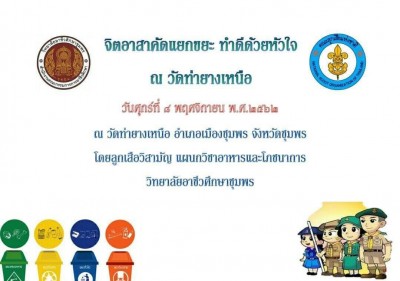 ขอเชิญลูกเสือวิสามัญ แผนกวิชาอาหารและโภชนาการ เข้าร่วมโครงการ จิตอาสาคัดแยกขยะ ทำดีด้วยด้วยหัวใจ ณ วัดท่ายางเหนือ