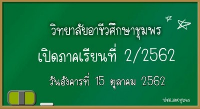วิทยาลัยอาชีวศึกษาชุมพร เปิดภาคเรียนที่ 2 ปีการศึกษา 2562 วันอังคารที่ 15 ตุลาคม 2562