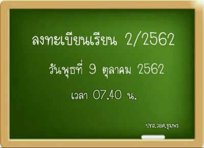 ลงทะเบียนเรียน วันพุธที่ 9 ตุลาคม 2562 เวลา 07.40 น.