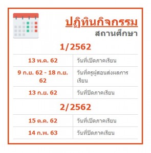 ปฏิทินการเปิดและปิดภาคเรียน ประจำภาคเรียนที่ 2 ปีการศึกษา 2562