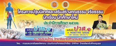 กำหนดการปฐมนิเทศและเสริมสร้างคุณธรรมและจริยธรรม นักเรียน ใหม่ ระดับชั้นปวช.1 ประจำปีการศึกษา 2562