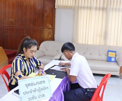 บรรยากาศการรับสมัครนักเรียนเข้าศึกษาต่อ วันจันทร์ที่ 25 มีนาคม 2562 ณ ห้องพุทธรักษา วิทยาลัยอาชีวศึกษาชุมพร