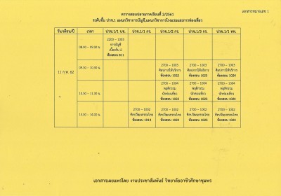 กำหนดวันสอบปลายภาคเรียนที่ 2/2561