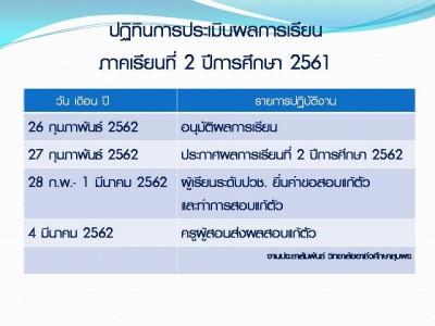 ปฏิทินผลการเรียนภาคเรียนที่ 2 ปีการศึกษา 2561