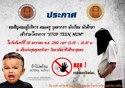 ขอเชิญคณะครู นักเรียน นักศึกษา เข้าร่วมโครงการ STOP TEEN MOM