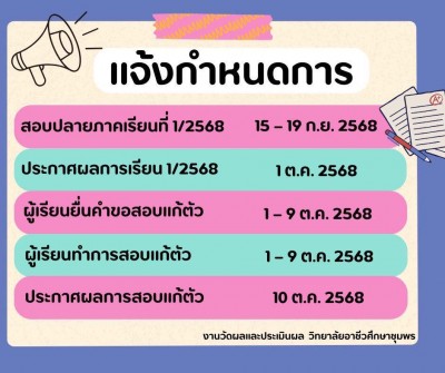 📢 กำหนดการงานวัดผลและประเมินผล