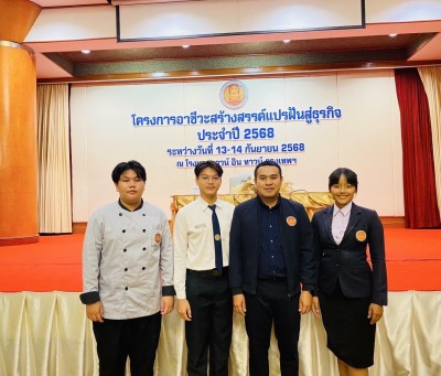 🥳ร่วมส่งแรงใจ แรงเชียร์🥳 ให้ธีมธุรกิจ SHRIMP SHEETS เปลือกกุ้งแผ่นอบกรอบ แป้งข้าวเหลืองปะทิว เสริมคุณค่าใบหม่อนและมะม่วงหาวมะนาวโห่ ในการเข้าร่วมประกวดโครงการอาชีวะสร้างสรรค์ แปรฝันสู่ธุรกิจ (RRR 2025) ระหว่างวันที่ 13-14 กันยายน 2568 ณ โรงแรมทาวน์ อิน ทาวน์ กรุงเทพมหานคร