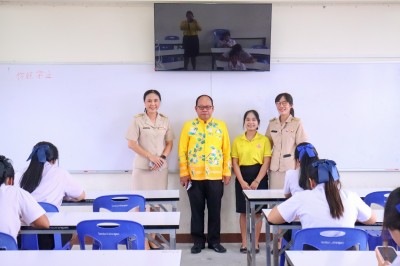 บรรยากาศเช้านี้ คณะผู้บริหาร คณะครูให้การต้อนรับ และอำนวยความสะดวกในการข้ามถนนและที่จอดรถของนักเรียนนักศึกษา และกิจกรรมหน้าเสาธง บริเวณอาคารอเนกประสงค์(โดม)