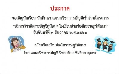 โครงการ บริการวิชาชีพการบัญชีสู่น้องๆโรงเรียนบ้านช่องไทรราษฎร์พัฒนา