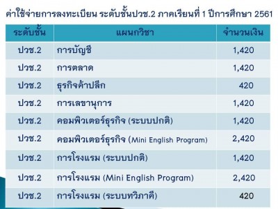 กำหนดให้มีการเก็บเงินค่าใช้จ่ายในการลงทะเบียนเรียน สำหรับนักเรียน นักศึกษา ระดับชั้นปวช.2,3 และปวส.2 ประจำภาคเรียนที่ 1 ปีการศึกษา 2561