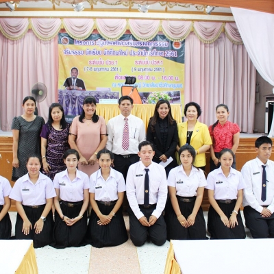 โครงการปฐมนิเทศและเสริมสร้างคุณธรรม จริยธรรม นักเรียนระดับชั้นปวช.1 ประจำปีการศึกษา 2561 วันอังคารที่ 8 พฤษภาคม 2561