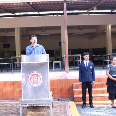 นายอนุศิษฏ์ แสงสว่าง รองผู้อำนวยการฝ่ายบริหารทรัพยากร เป็นประธานในพิธีปิดโครงการปฐมนิเทศและเสริมสร้างคุณธรรม จริยธรรม นักเรียนระดับชั้นปวช.1 ประจำปีการศึกษา 2561