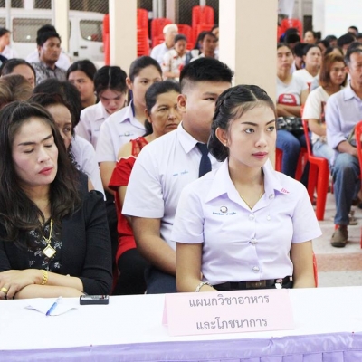 นายศักร์สฤษฏิ์ หนูเอียด รองผู้อำนวยการฝ่ายพัฒนากิจการนักเรียน นักศึกษา เป็นประธานในพิธีปิดโครงการอบรมหลักสูตรวิชาชีพระยะสั้นฐานสมรรถนะ วิทยาลัยอาชีวศึกษาชุมพร