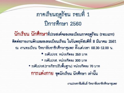 วิทยาลัยอาชีวศึกษาชุมพร กำหนดการลงทะเบียนเรียนภาคฤดูร้อน (รอบแรก) ปีการศึกษา 2560