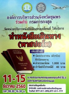 องค์การบริหารส่วนจังหวัดชุมพร ร่วมกับ กรมการกงสุล จัดหน่วยบริการหนังสือเดินทางเคลื่อนที่ ให้บริการทำหนังสือเดินทาง (พาสปอร์ต)
