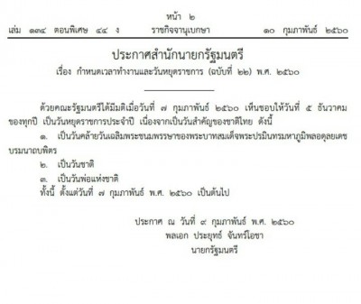 วันที่ ๕ ธันวาคม เป็นวันหยุดราชการประจำปี