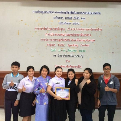ผลการแข่งขันตอบปัญหาประวัติศาสตร์ชาติไทย ในการแข่งขันทักษะวิชาพื้นฐาน ระดับภาค ภาคใต้ ประจำปีการศึกษา 2560 ณ วิทยาลัยเทคนิคหาดใหญ่ วันพุธที่ 6 ธันวาคม 2560 ได้รับรางวัลชนะเลิศ