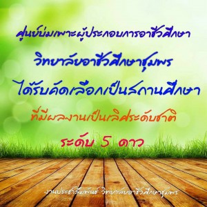 ศูนย์บ่มเพาะผู้ประกอบการอาชีวศึกษา วิทยาลัยอาชีวศึกษาชุมพร ได้รับการคัดเลือกเป็นสถานศึกษาที่มีผลงานเป็นเลิศระดับชาติ ระดับ 5 ดาว ในการติดตามประเมินผลการดำเนินงาน