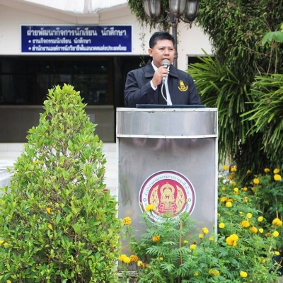 นายศักร์สฤษฏฺิ์ หนูเอียด รองผู้อำนวยการฝ่ายพัฒนากิจการนักเรียน นักศึกษา แนะนำครูต่างชาติคนใหม่ที่สอนนักเรียน นักศึกษา ภาคเรียนที่ 2 ปีการศึกษา 2560 ในวันอังคารที่ 24 ตุลาคม 2560 ณ สนามหน้าองค์พระวิษณุกรรม วิทยาลัยอาชีวศึกษาชุมพร