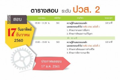 ตารางสอบ V-Net ระดับปวส.2 ประจำปีการศึกษา 2560